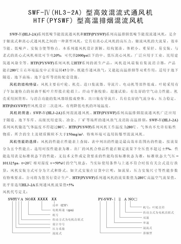 產品名稱:HTF(PYSWF)型高溫排煙混流風機