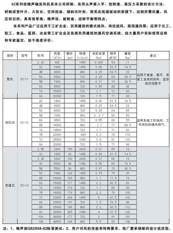 產品名稱:DZ型低噪聲軸流通風機